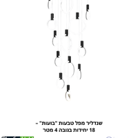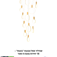 הפכו כל חלל גבוה ליצירת מופת אדריכלית עם שנדליר "בועות" (Bubbles). גוף תאורה מונומנטלי זה תוכנן במיוחד כדי למלא חללים בעלי תקרה גבוהה בנוכחות עוצרת נשימה. הוא מורכב מבסיס תקרה עגול (60 ס"מ) ממנו משתלשלות 18 טבעות תאורה, התלויות בגבהים משתנים באמצעות מחברים מעוצבים (בגימור זהב או שחור לבחירה). התוצאה היא מפל אור דרמטי ואלגנטי בגובה כולל של עד 4 מטרים. תאורת ה-LED העוצמתית במיוחד (270W סה"כ) בגוון אור טבעי (4000K) מבטיחה הארה מלאה ומרשימה של החלל כולו.